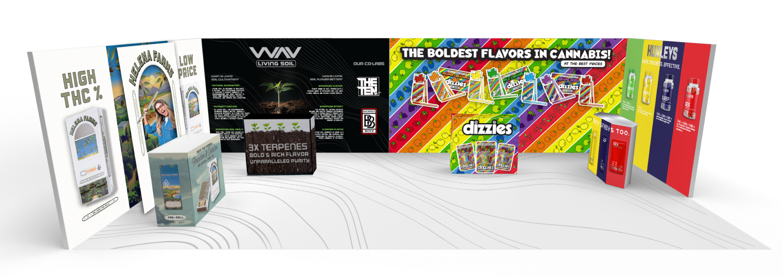 I had the opportunity to design a 20’x10’ booth for four emerging cannabis brands at Hall of Flowers, one of California’s largest cannabis trade shows.